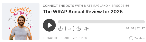 I’d love to hear how this system works for you. If you do an annual review using WRAP, let me know how it goes! See you next year 👋🏻 Matt Ragland p.s. if you missed the book list last week, find your next great read here. |