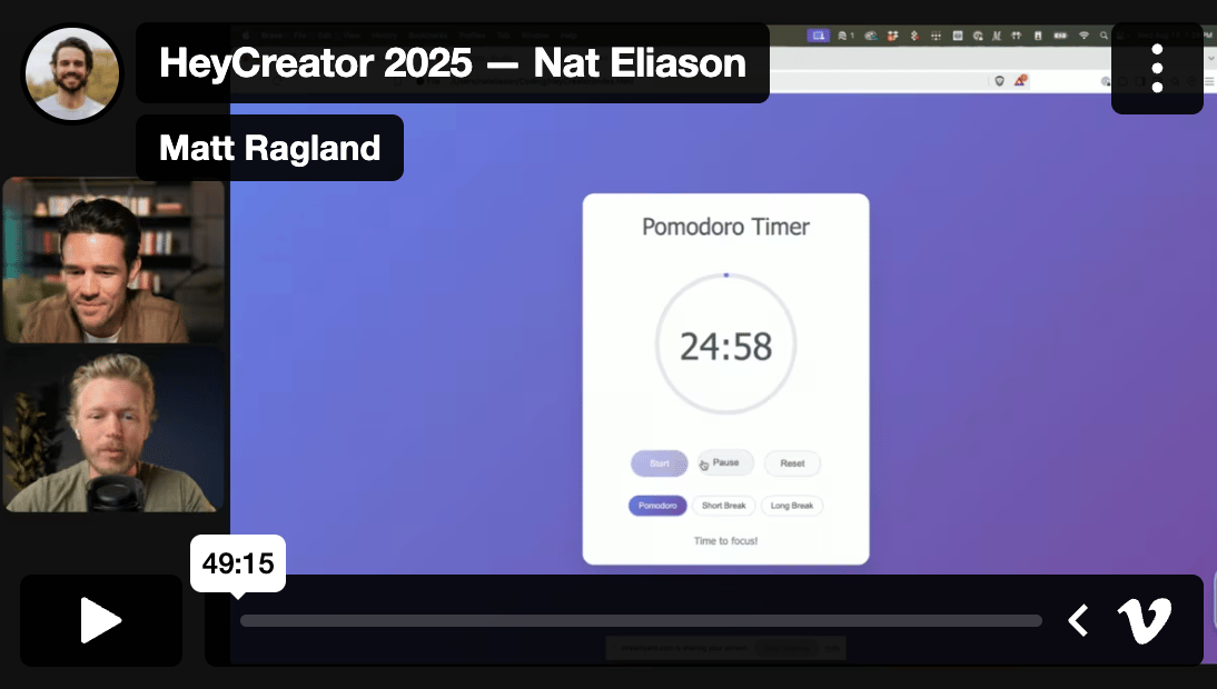 Hey Reader, So I'm adding a calendar invite to a webinar email—the kinda thing that should take about 30 seconds—and I get hit with one of those "You've reached your plan limit" notifications. They're asking me for $29/month to make calendar invites. I built my own version in an hour. That kicked off a weekend where I ended up building two web apps with Claude Code even though I have minimal coding experience. You might not have the same problems to solve as I do, but what I'm sharing today will give you ideas about how to start fixing a couple of your own. 💡 One Big Idea: The coolest way to solve your own problemsThe first problem came up because I was using a tool to help me add event reminders to my webinar signup emails. But then I ran into a usage limit which was asking me to pay $29/month to create calendar events. Y'all, it literally took me an hour to build a replacement tool with Claude Code. Now my assistant and I can create as many calendar invites as we need, and embed them directly in Kit emails. Enter SendInviteTo.Me 🗓️ You just put down the title, date/time, location, description, and voila! You can embed the invite on your website or email. The second problem had been bugging me for a while—liquid syntax in Kit emails. It's the not-as-scary-as-php-but-still-scary-to-noobs code that shows your name at the top of the email, as well as other things like dates, tags, etc. Kit has a very helpful doc on their site, and there is a personalization menu in the email editor, but it's pretty simple. I had a list in Notion of codes I used often, but it wasn't always as handy as I wanted. So in two more hours I built a reference tool for commonly used liquid code, along with the complete list of subscriber variable, filter, and control flow tags available for Kit emails. That's why WriteLiquid exists. I've written about this a couple times before, and these days I'm only using Claude Code. It keeps getting easier to use, by the way—you can code in the desktop app, no terminal required. Look, I didn't build these tools because I'm technical. I built them because I had a specific problem and decided to try solving it myself instead of paying someone else or living with the workaround. If there's something in your business that's held together with duct tape: a janky spreadsheet, a manual process you repeat every week, a tool that does 80% of what you need... you might be closer to fixing it than you think. 📹 Video to Watch: Nat Eliason shows you how to vibe code a pomodoro timerI actually haven't released this video publicly yet, but it's a recording from the HeyCreator Summit last year. My friend and vibe-coding sensei, Nat Eliason, came on to talk about how the nature of software is rapidly changing and what non-technical people (like me!) can do now. You can see from the thumbnail that it's a long one, really more of a podcast interview, but if you skip to 26:47 on the video you'll be able to watch Nat's build. And while you watch, remember that everything he's doing is easier now. 📰 Article to Read: You Can't Think Your Way to a Meaningful LifeBut here's the thing about building—you actually have to start. Which brings me to something my brother Mark wrote recently. Mark is on a writing tear and putting some great stuff down in his Substack. A recent post is about a problem that many smart people face... the learning trap. The belief (subconscious or not) that if you learn enough then "the thing" will get done. The thing could be a business, a book, a relationship, or just a personal goal you have. Mark gives some really sharp and easy-to-follow bits of advice about how to avoid that trap, or at least escape quickly if you still fall in. *** Thanks again for reading the WRAP, I'll talk to you again next week. Matt Ragland |